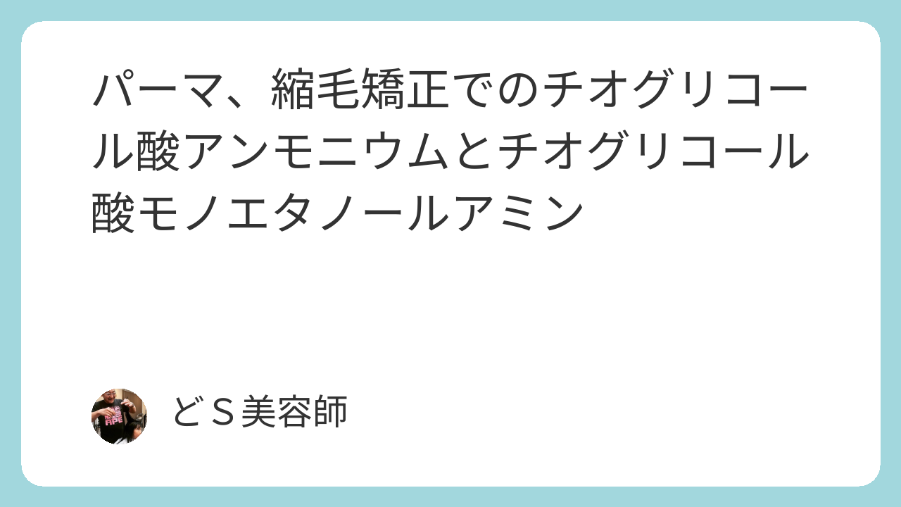 ま〜君が言いたいのは日本でパーマや縮毛矯正での還元剤の成分である、チオグリコール酸アンモニウムとチオグリコール酸モノエタノールアミンのことだとしてお話を進めるね。あとMEAはモノエタノールアミンというアルカリ剤だよね。