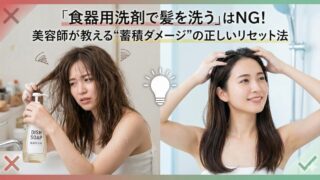 「髪がベタつく」「トリートメントが効かなくなった」と感じたとき、美容師さんから「食器用洗剤で洗ってコーティングを落として」というアドバイスを受けたことはありませんか?実はこれ、髪にとっては非常にリスクの高い行為です。今回は、巷で囁かれる「食...