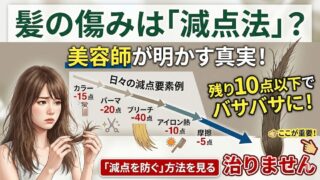 毛髪の基礎知識 髪の傷みは「減点法」?トリートメントでも治らない理由と美髪の本質 「毎月トリートメントに通っているのに、毛先がバサバサ…」 「高いヘアケア剤を使っているけれど、髪質が変わった気がしない」そんな風に悩んでいる方は少なくありません。実は、髪のダメージには決定的なルールがあります。それは、髪は一度傷むと二度と元... 2026.04.26 毛髪の基礎知識
