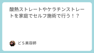 理美容師さんからの質問 酸熱ストレートやケラチンストレートを家庭でセルフ施術で行う!? 酸熱ストレートや酸熱トリートメントとかケラチンストレートや髪質改善トリートメントなどは家庭で手軽にセルフ施術できるって本当ですか?酸熱ストレートやケラチンストレートはダメージレスで髪の毛を傷める事もなく、くせ毛をストレートに伸ばすことが可能... 2025.11.08 理美容師さんからの質問